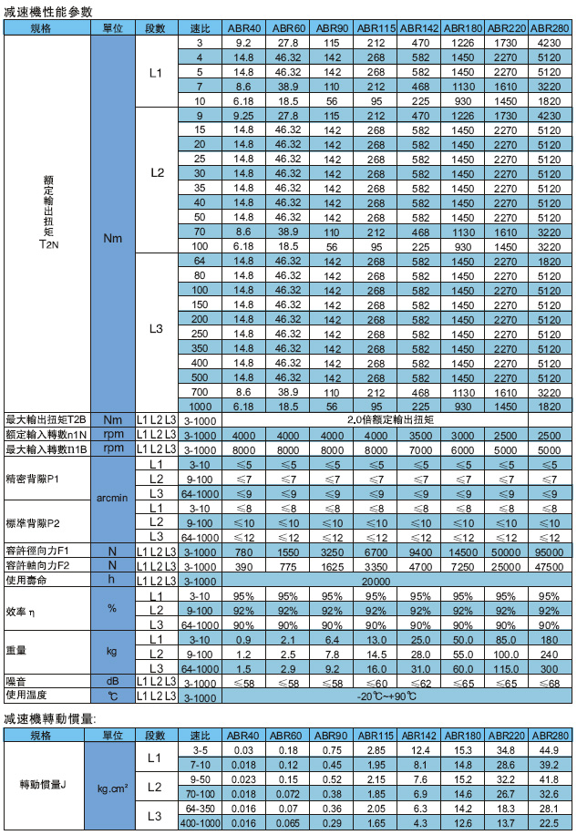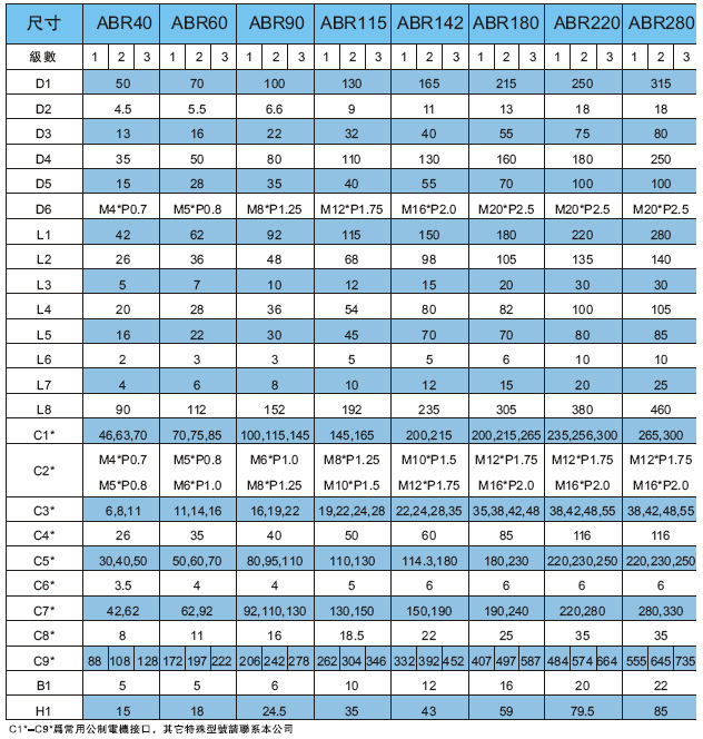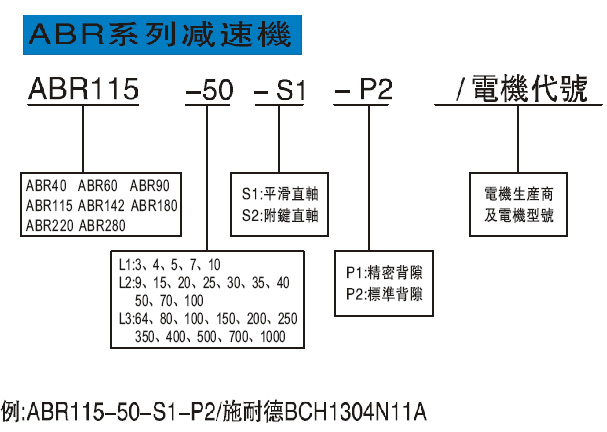 ABR系列直角行星齒輪減速機(jī)分:ABR40、60、90、115、140、180、220、280直角式機(jī)座型號(hào),速比:1-200有20多個(gè)比速可選擇;分一 級(jí)和二 減速傳動(dòng);精度:傳動(dòng)精度在2-4弧分,二級(jí)傳動(dòng)精度在4-6弧分等一千多種規(guī)格。